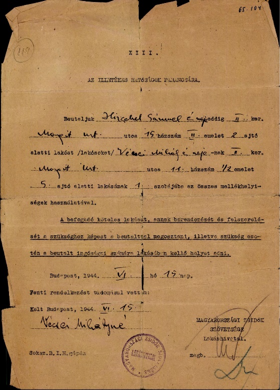 People locked in yellow-star houses had little reason to hope. No protection could be expected from anyone. The not-so-strong prestige of the Jewish Council had been thoroughly battered in previous months. The concentration of the Jewish population in the yellow-star houses in mid-June was a real logistical feat on the part of the leadership. At the same time, no recognition was awarded for it: the Hungarian authorities simply set the deadline and designated the yellow-star houses, but did not care about the details, and left the decisions causing so much grievance to Jewish Council’s Housing Office. The Jewish officials had to decide: who moves where, in what kind of property of what size and who would move into whose apartment. As the families running around for transportation, carrying belongings and furniture, had barely met the Germans or the Hungarian police, everyone scolded the Jewish Council, which soon became the object of public hatred. The atmosphere is well characterized by a contemporary joke in Pest: “Jewish apartment. At night, the doorbell rings, the inhabitants tremble in horror. Who is it? The host asks. Gestapo - sounds the ominous answer. - Thank God. I thought it’s the Jewish Council.”