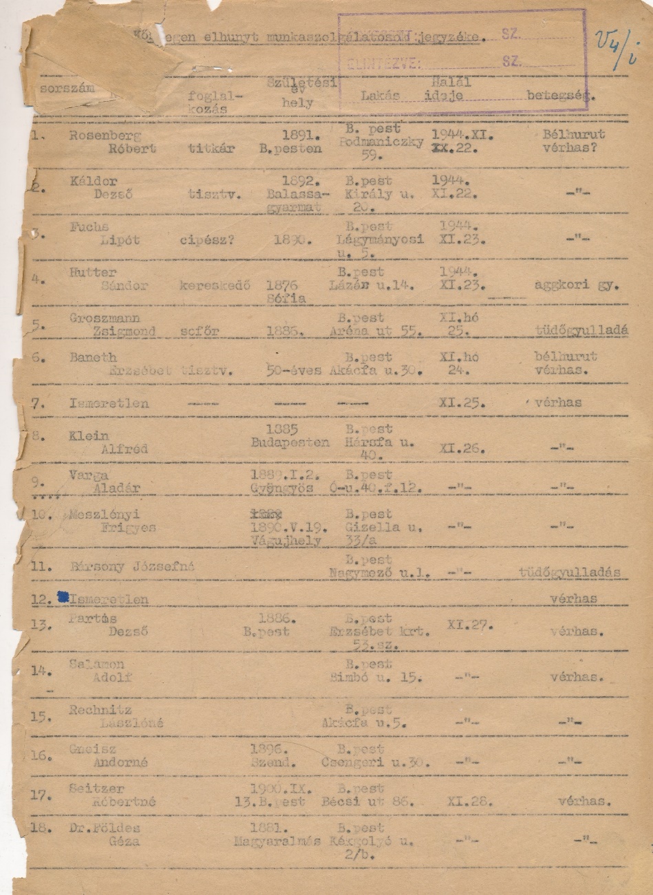 On 16 October, the yellow-star houseswere closed for several days. The Jews were not allowed to leave them for any reason. The Arrow Cross guards did not allow any food or medical personnel into the houses. First Eichmannand Gábor Vajna, the Arrow Cross Minister of the Interior, and a few days later German plenipotentiary Edmund Veesenmayer and Ferenc Szálasi, the new leader of Hungary, concluded an agreement on the “transfer of labor force”, i.e. the resuming of deportations. This applied not only to the Jews in the capital but also to the labor service companies stationed in other parts of the country.