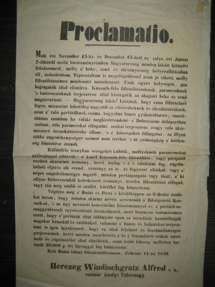 Jewish shops were ransacked, Jewish citizens were beaten in the streets, and a petition was submitted to the government demanding that Jews who had settled in Pest without permission be expelled and that Jewish national guards be disarmed. Outraged, one of the figureheads of the anti-Habsburg revolution, Minister of Finance Lajos Kossuth wanted to fire cannons at the antisemitic mob, but his fellow ministers voted him down. Prime Minister Lajos Batthyány tried to calm the crowd with a speech, but he was booed. Order was finally restored by the army. It was characteristic of the government's weakness that a few days later, Jewish members of the newly created revolutionary force, the national guards, were disarmed. The newspaper Budapesti Híradó rightly lamented: "Fate has decreed that the days of Hungary's rebirth should not be recorded in the annals of this nation without blemish: our freedom has been tainted, and in the most shameful manner."